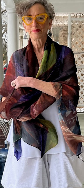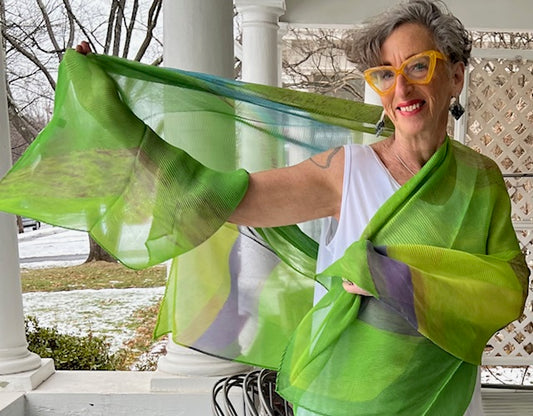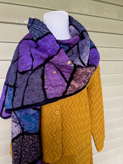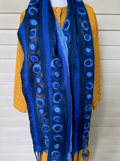 Felted Chiffon Wool Scarf Stripes and Stones (Blue, Orange, or Gray)