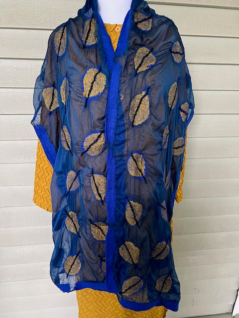 Felted Leaf on Blue Chiffon Scarf (Gold Leaf or White Leaf)