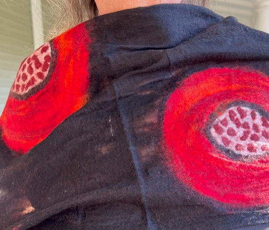 Black Pomegranate Silk and Felted Wool Scarf
