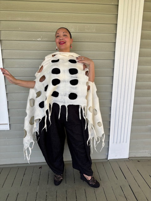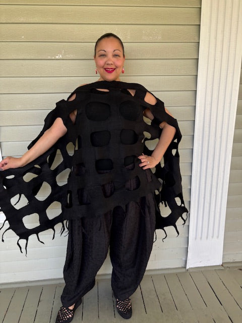 Felted Scarf With Square Cutouts (Black)