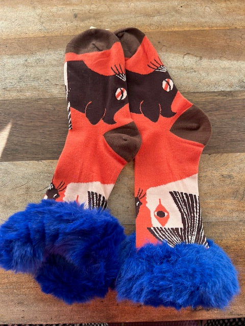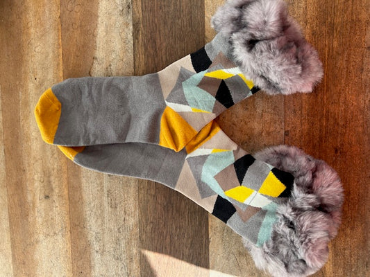 Silk Blend Faux Fur Socks -Grey & Yellow