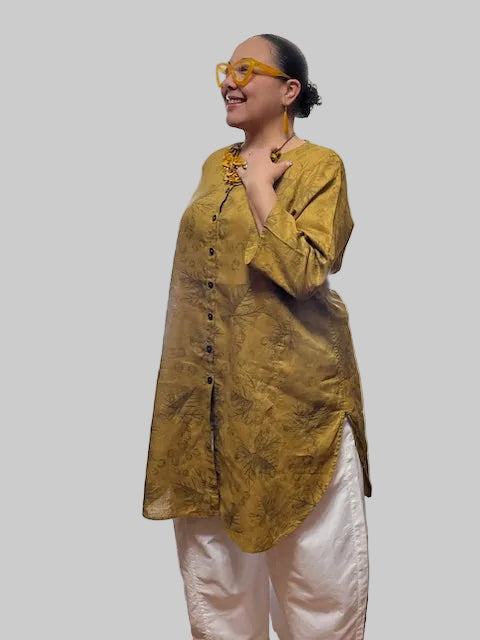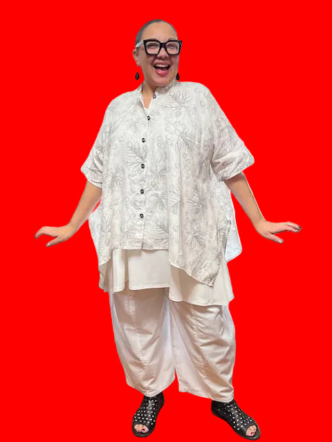 Cheyenne 100% Linen Offcenter Button-Up Trapeze Shirt