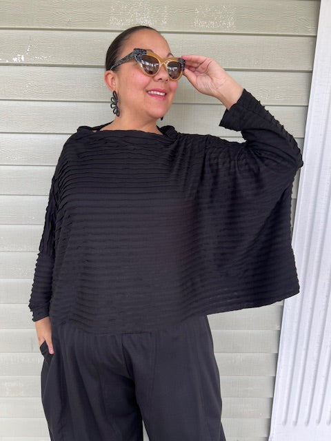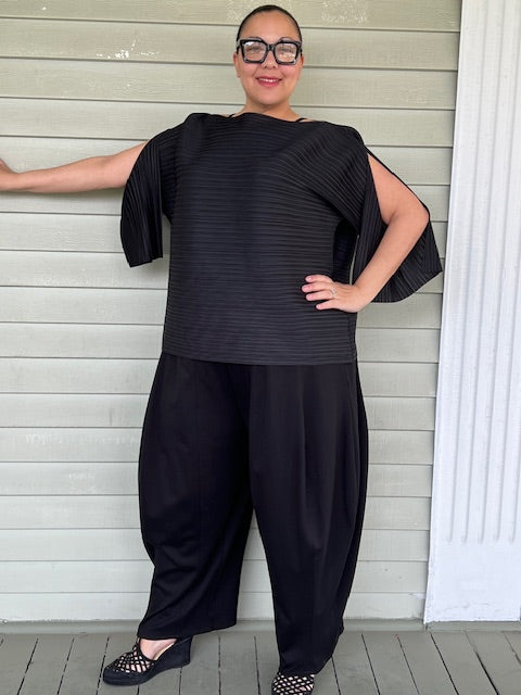 Vanite Couture Black Pleated Top(Side Slit Sleeve )