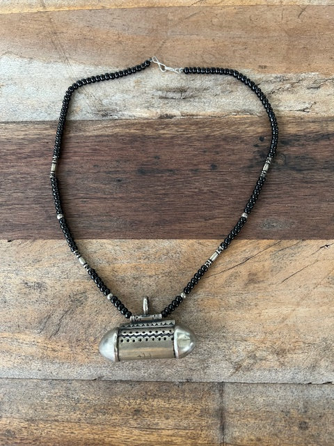 Black and Orange Agates with a Calabaza Santo Domingo Pendant