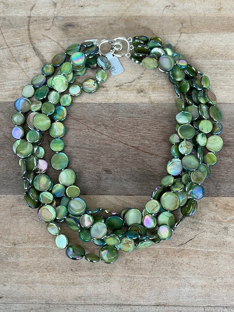 5-Strand Mother of Pearl Necklace (Olive Green)