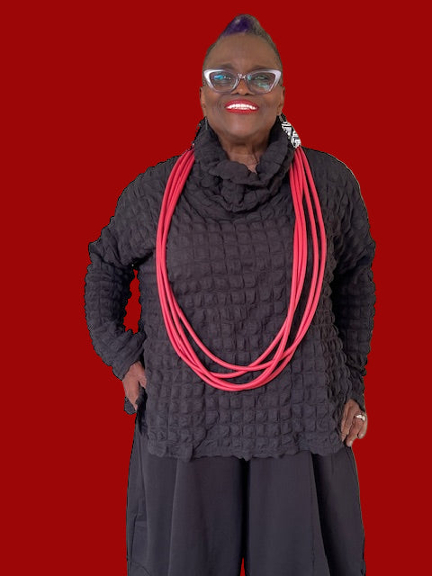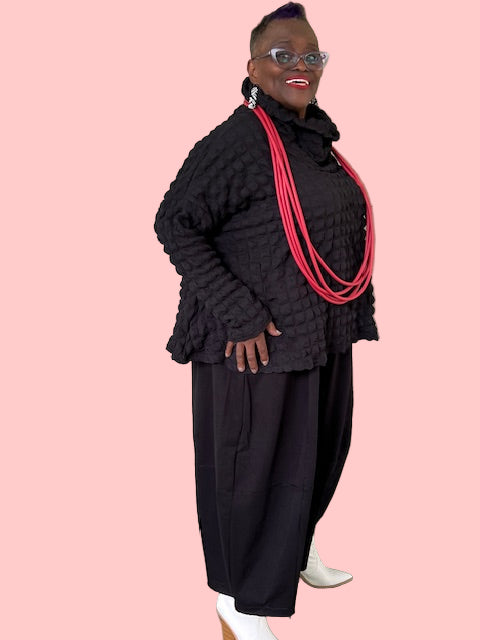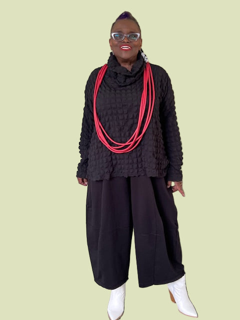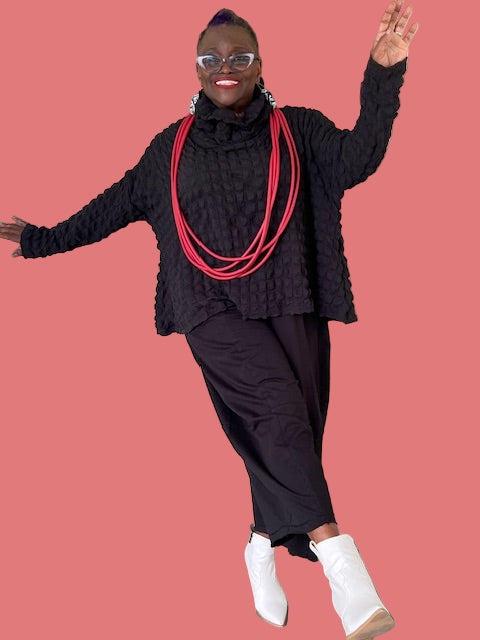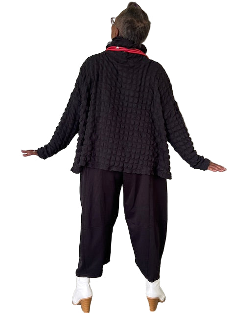 This top is made in a lightweight puckered fabric. It can be worn to the office or to a gala.