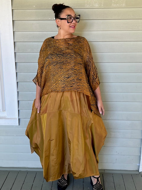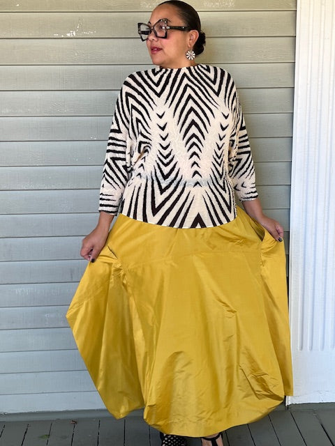 DTH Architect Skirt in 100% SilkTaffeta (Chartreuse, Irridescent, Burgundy, Dark Gray, Gold, Silver Gray, Black, Turmeric, Olive Gold, Navy