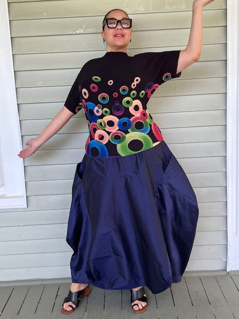 This one of a kind skirt in has vertical and horizontal seams (thus the term "architect") and two inseam pockets.