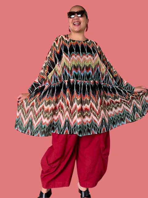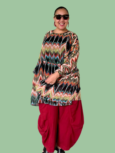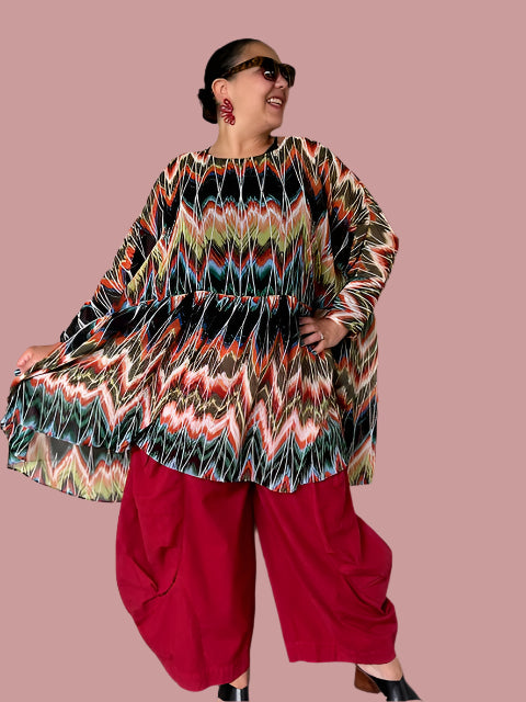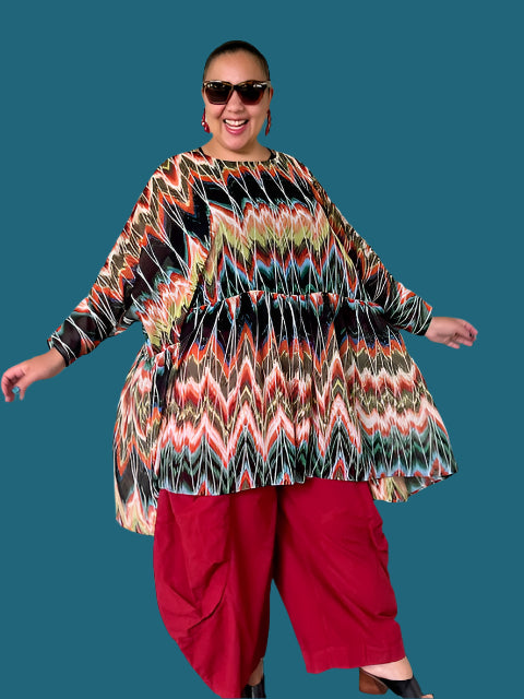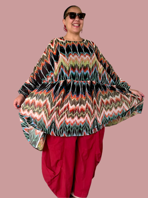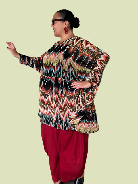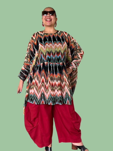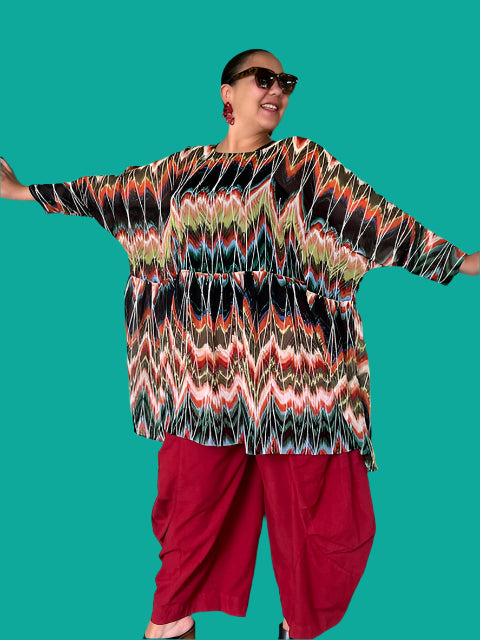 This top in a very lightweight material is comfortable and able to be worn with almost any pants or skirts in your closet. One Size Fits Most
