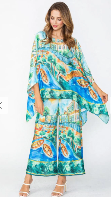 Elevate your wardrobe with the IC Collection Wide Leg Pant, A stunning piece that combines timeless elegance with modern comfort. Crafted from 100% poly, these designer pants offer a luxurious drape and flowing silhouette that flatters every figure. (Shown here with matching IC Collection Print Poncho Top)