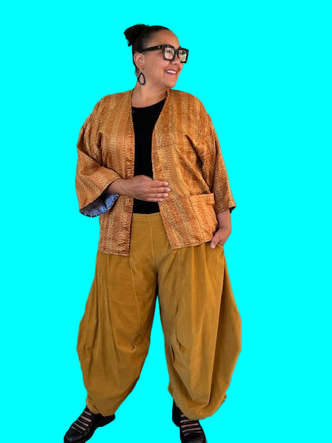Reversible Silk Kantha Kimono Jacket (Gold/Blue/Green or Gold/Green/Red)