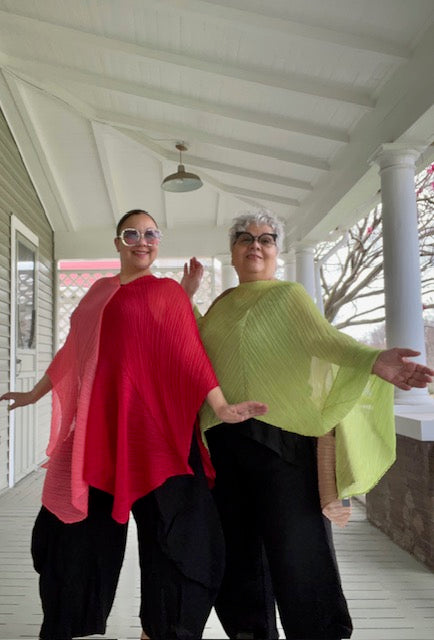Vanite Couture Pleated Poncho (Coral/Red, Teal/Navy, or Mocha/Lime)